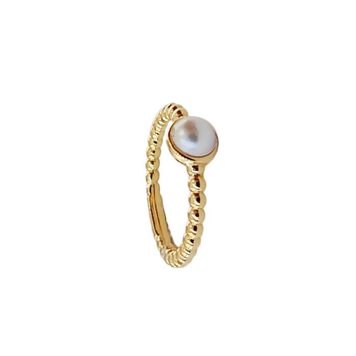 Anel semi joia banho ouro 18k. Aliança toda bolinhas. Pérola solitária Swarovski.