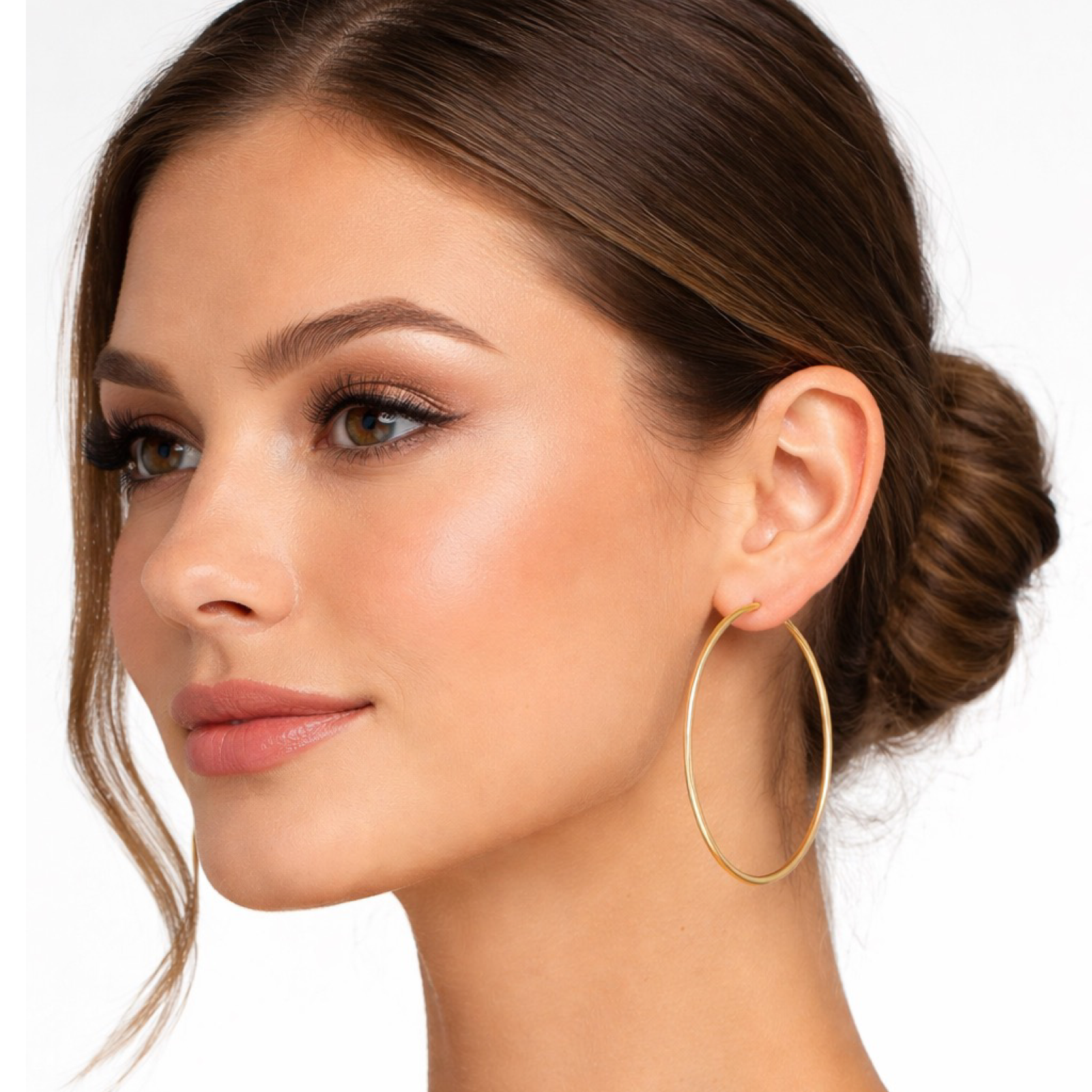 Brinco semijoia banho ouro 18k. Argola inteira, fina, meia cana (sem tarraxa), lisa. Niquel free