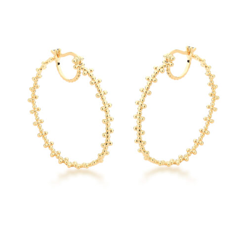 Brinco semi joia banho ouro 18k. Modelo argola redonda, toda trabalhada em mini trevos e fecho italiano. Niquel free