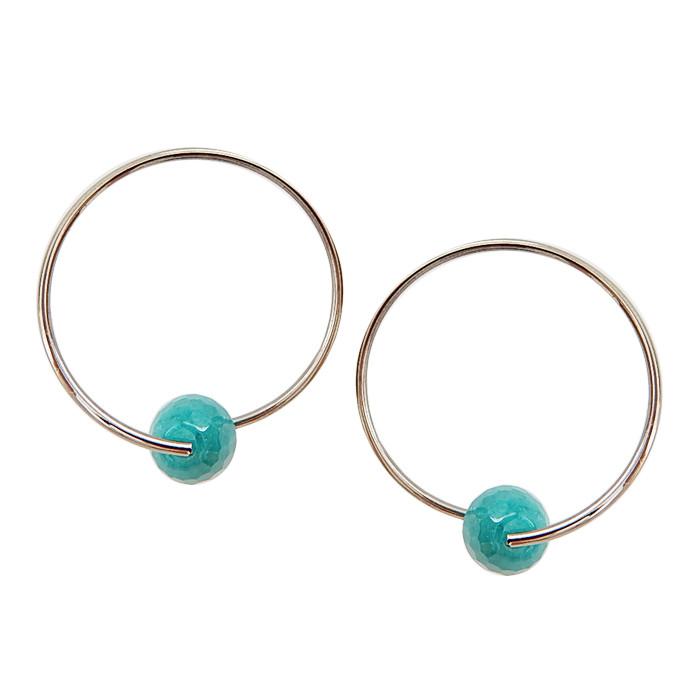 Brinco semi joia banho ródio negro. Círculo irregular com jade esmeralda, oval e facetada centro.