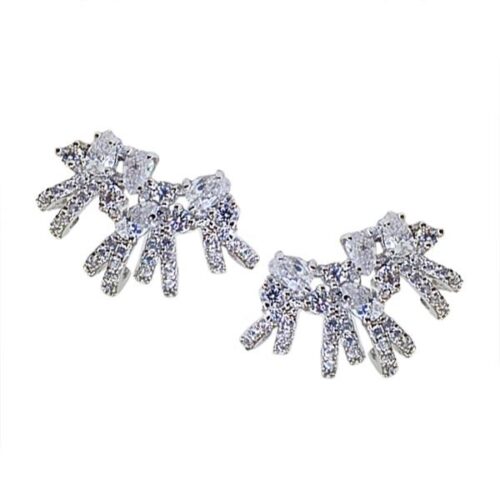 Brinco semi joia. Banho ródio ou ródio negro. Modelo inspired tipo mola, 4 gotas em zircônias cores e 5 pontos em zircônia cristal e 8 fios cravejados com zircônia cristal.