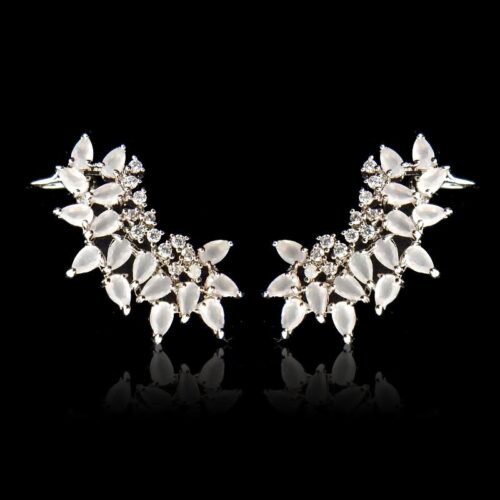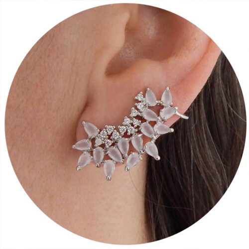 Brinco semi joia. Modelo ear cuff todo em gotas e pontos de zircônia. Curvo e adaptável ao formato da orelha com ajuste lateral.
