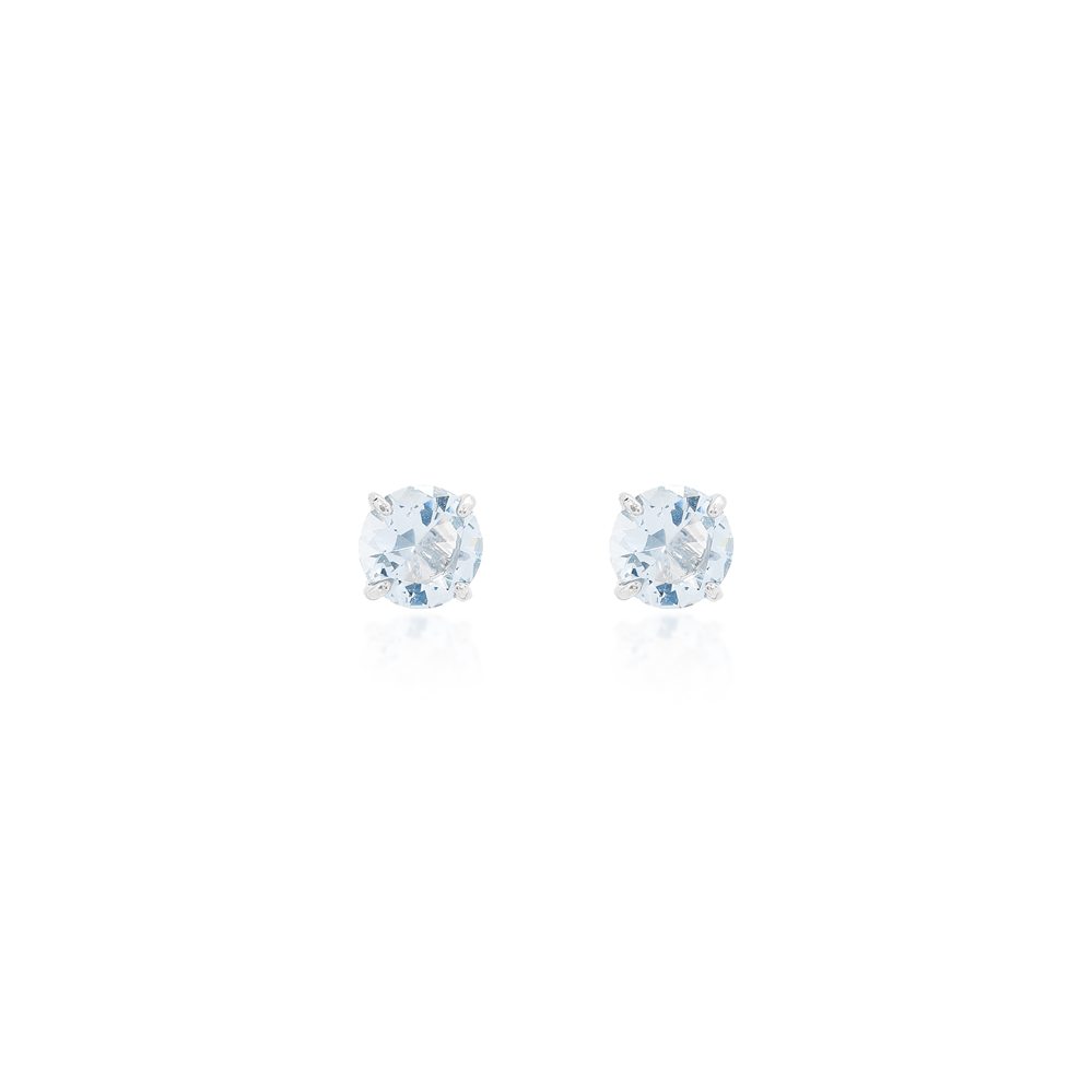 Brinco joia em prata 925. Ponto de luz cristal água marinha, facetado. Niquel free