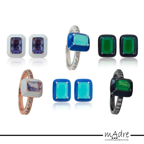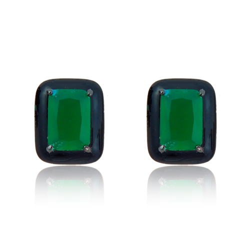 Brinco semijoia. Ponto retangular em cristal facetado, com contorno esmaltado.
