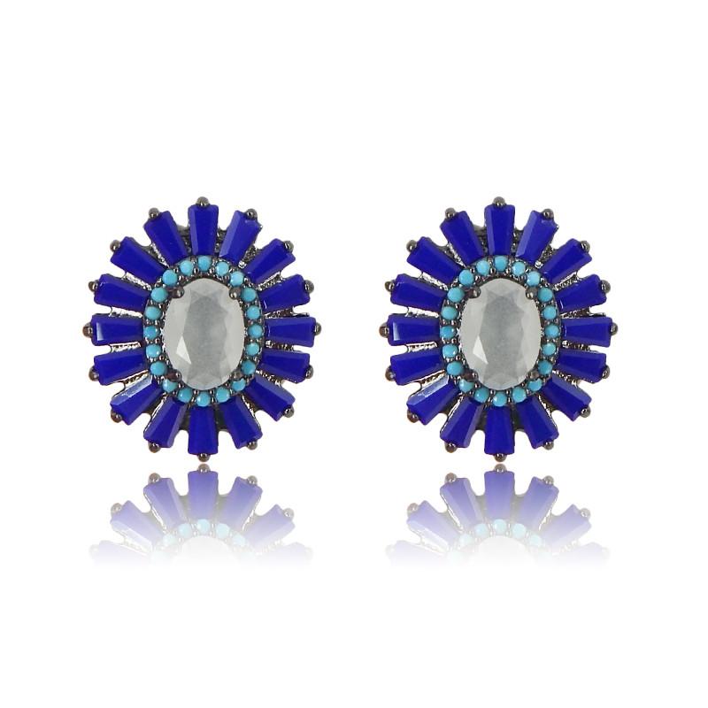 Brinco semi joia banho ródio negro. Tipo bottom. Formato oval, com zircônia lapidada ao centro, fio cravejado e contorno todo em zircônias baguetes.