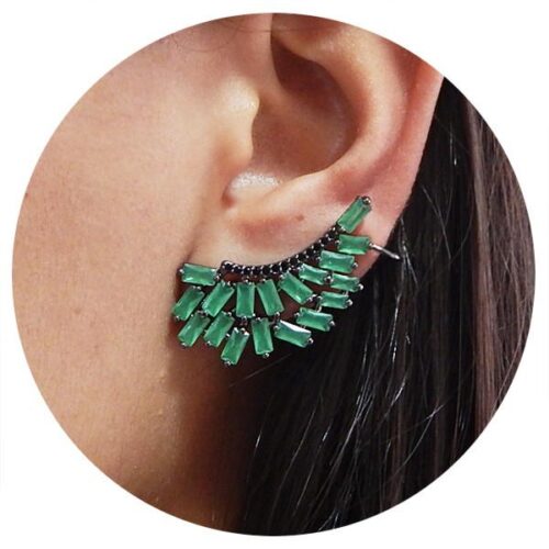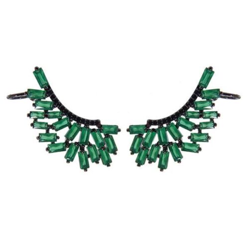 Brinco semi joia banho ródio negro. Modelo ear cuff todo em zircônia baguete – cores – e encaixe lateral.