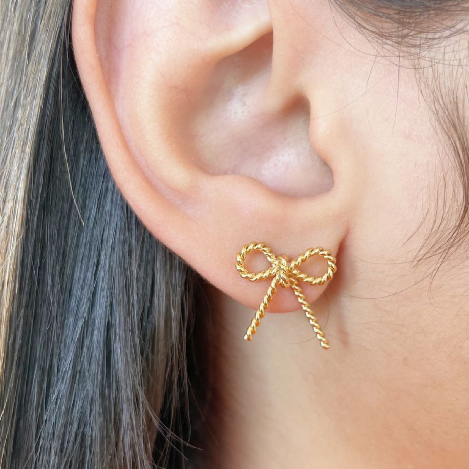 Brinco semijoia banho ouro 18k. Lacinho torcido -tipo filigrana- delicado e fino. Niquel free