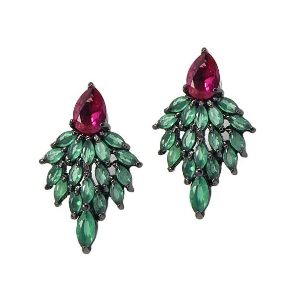 Brinco semi joia banho ródio negro. Base em gota invertida. Folha toda em mini navetes.