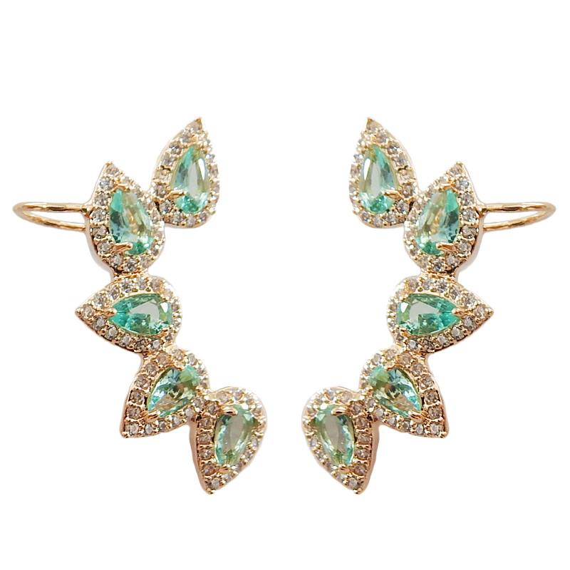 Brinco semi joia banho ouro 18k. Modelo ear cuff curvo e bilateral com 5 gotas de zircônias facetadas. Contorno microcravejado. Gancho lateral para encaixe.