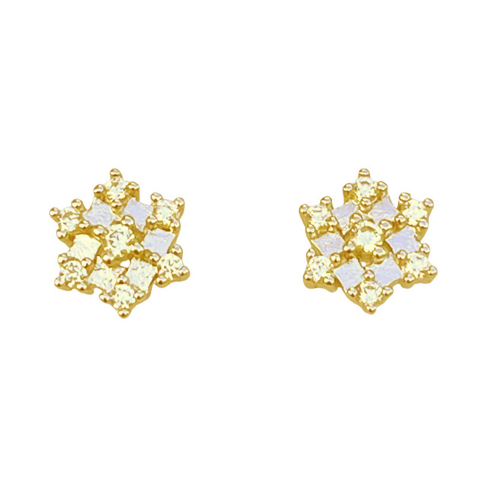 Brinco semijoia banho ouro. Mini flor com 7 zircônias cravejadas. Niquel free