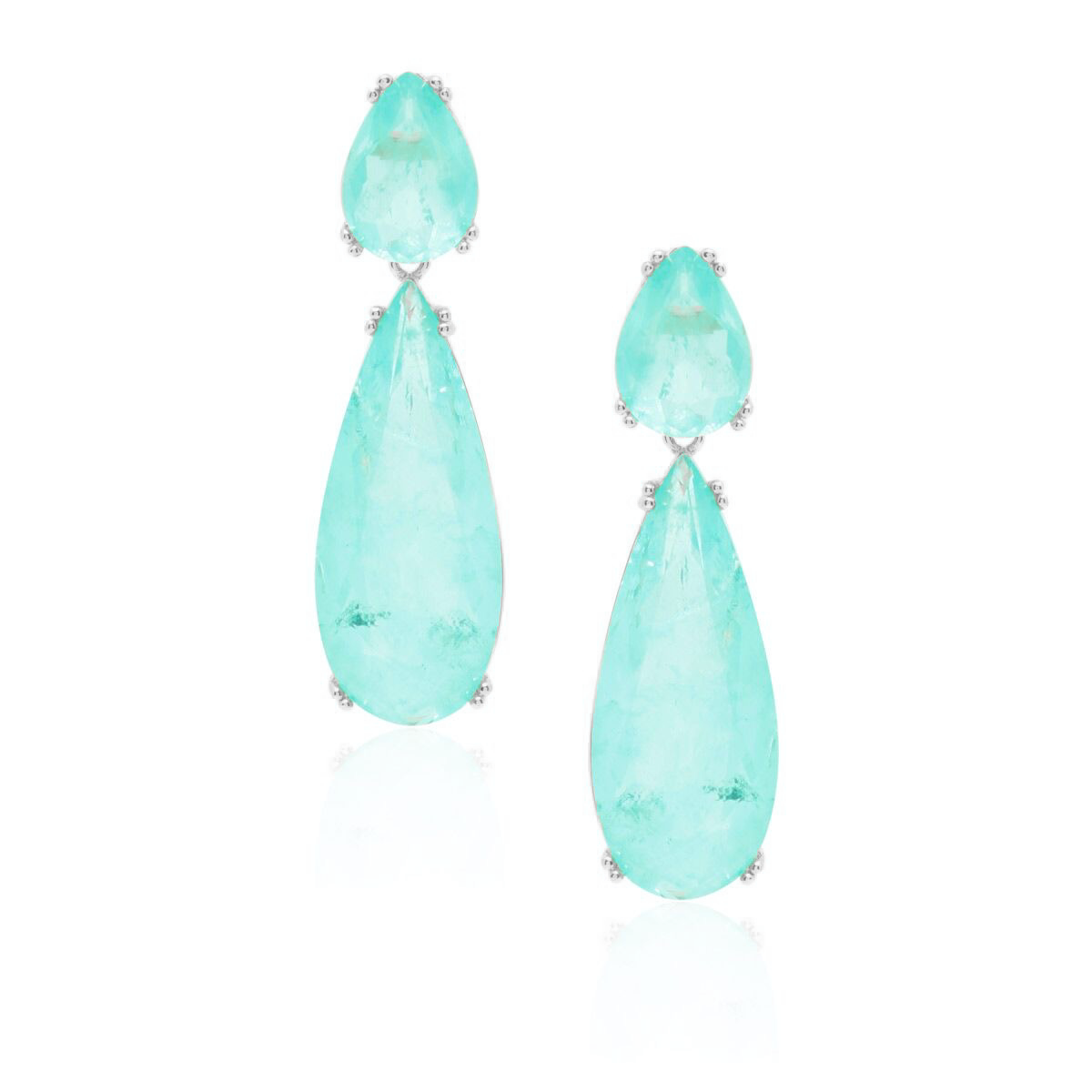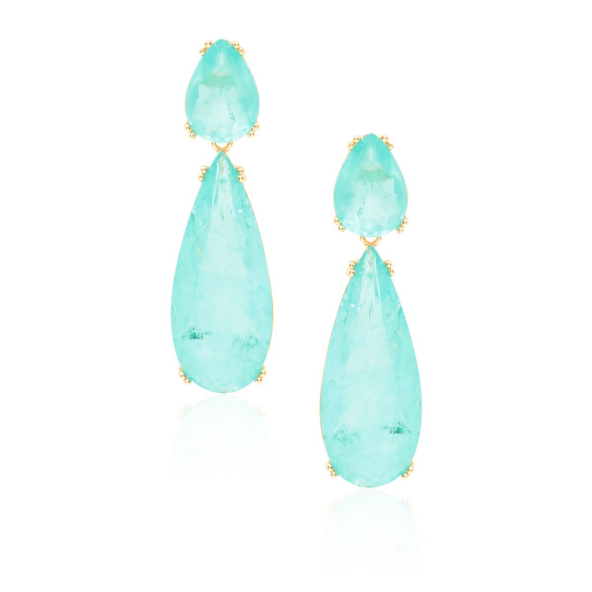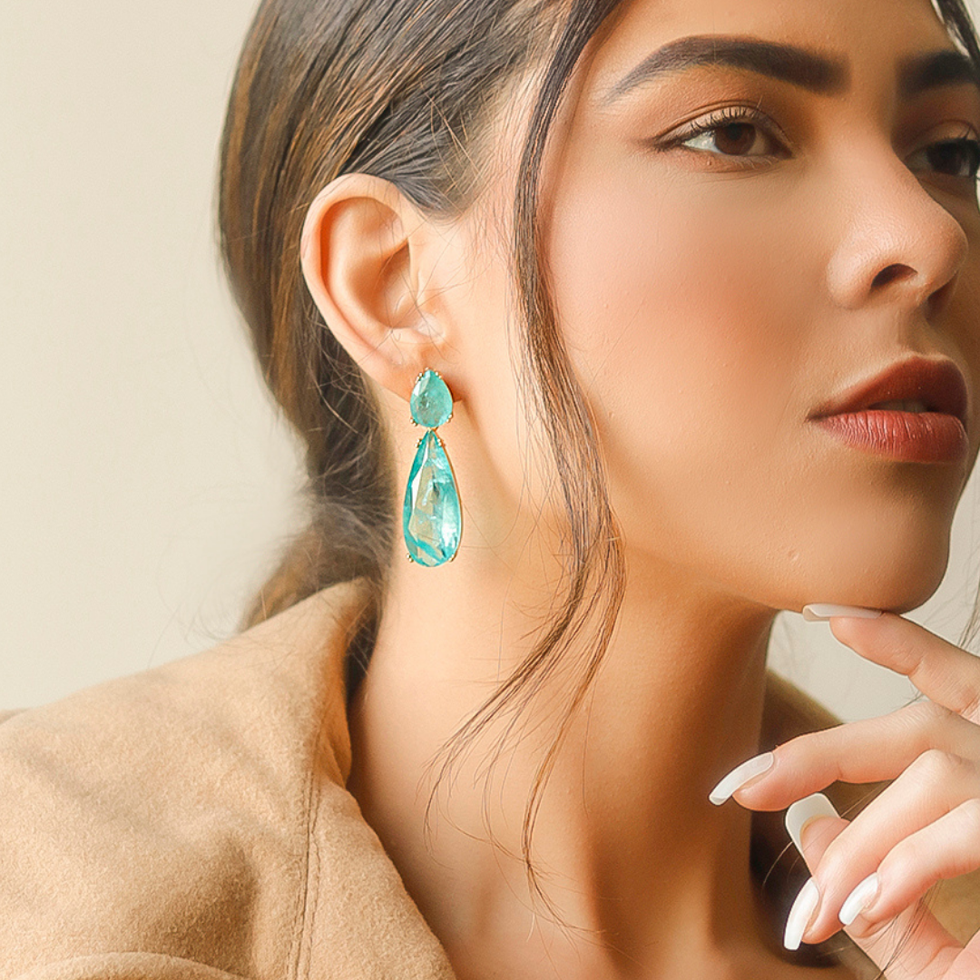 Brinco semijoia. Gota cristal fusion dupla e invertida. Niquel free