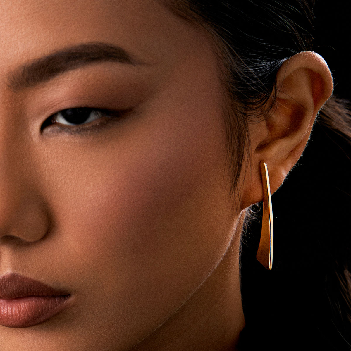 Brinco semijoia banho ouro 18k. Design 3D moderno e todo liso. Niquel free