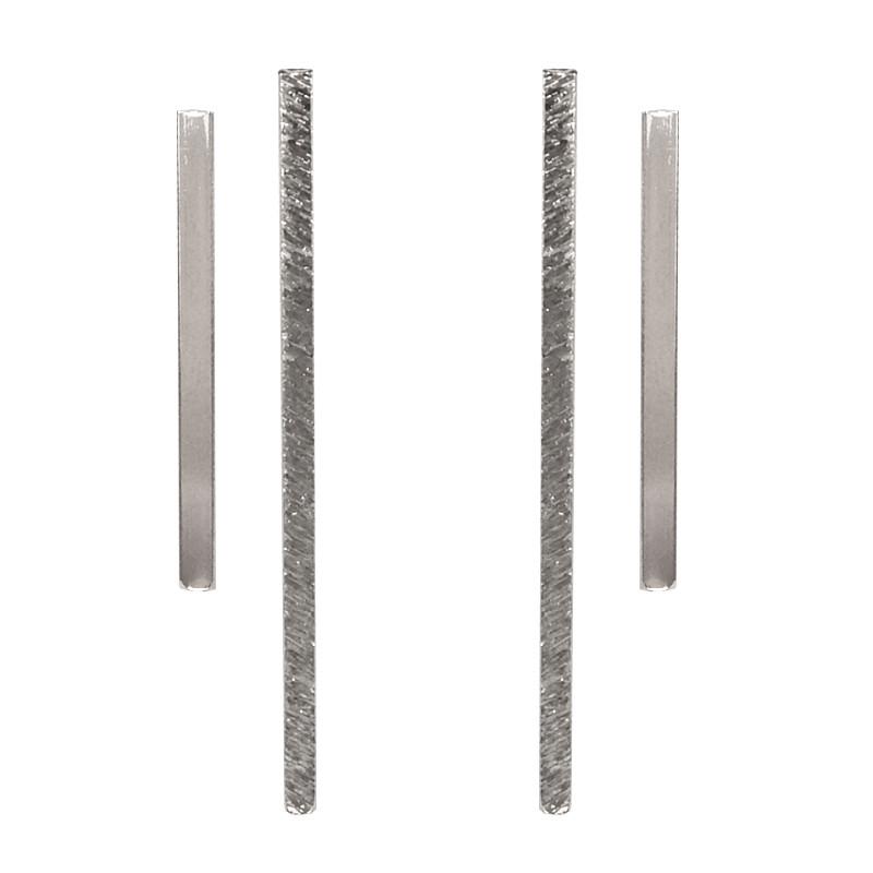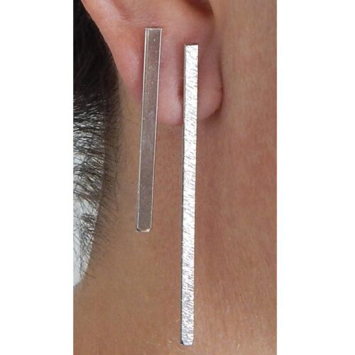 Brinco semi joia. Chapa reta e fina. Par. Segundo furo liso e primeiro furo lixado.