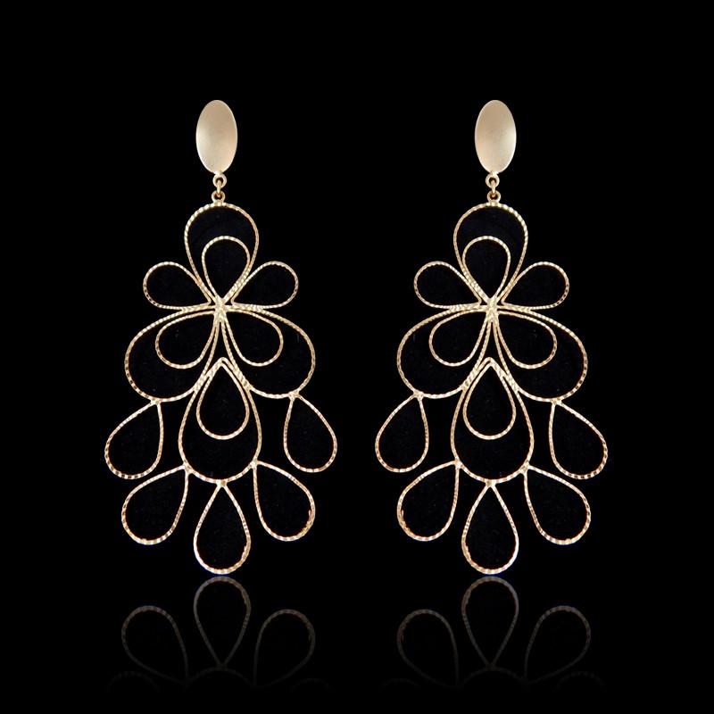 Brinco semi joia banho ouro 18k. Base oval. Trabalho flor gg toda vazada, lixada e granitada.