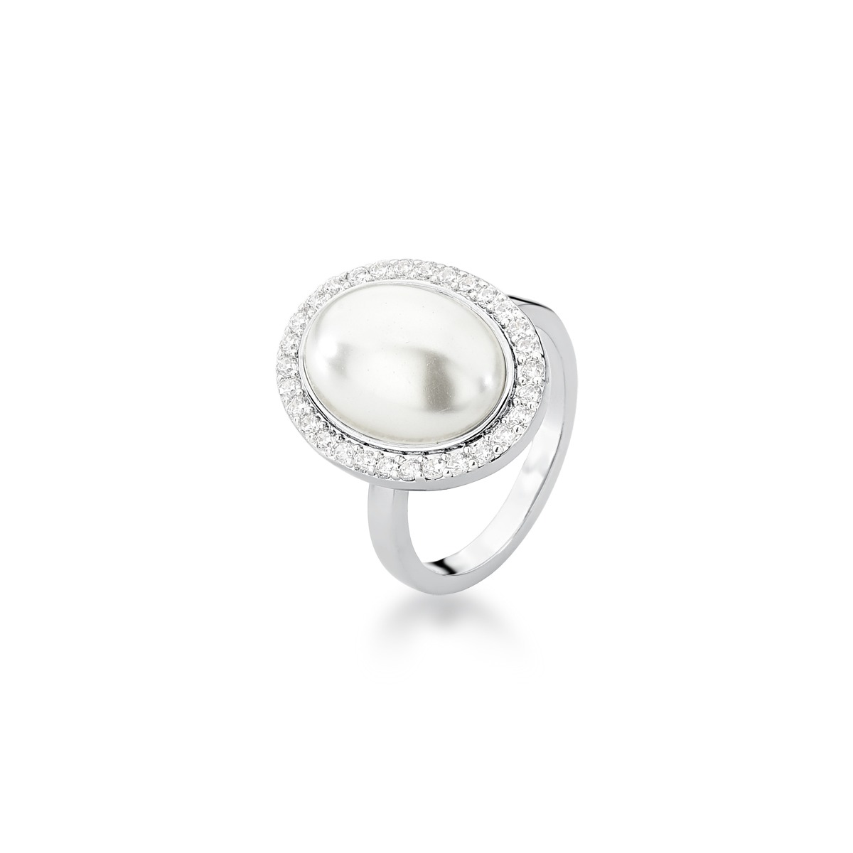 Brinco semi joia banho ródio. Base 1/2 pérola sintética, contorno cravejado. Franjas mix com correntes em zircônias e fios diamantados. Tamanhos alternados. Niquel free