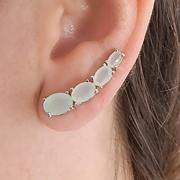 Brinco semi joia banho ródio. Ear cuff 4 ovais em cristal cor água marinha, pino de anzol para encaixe perfeito.