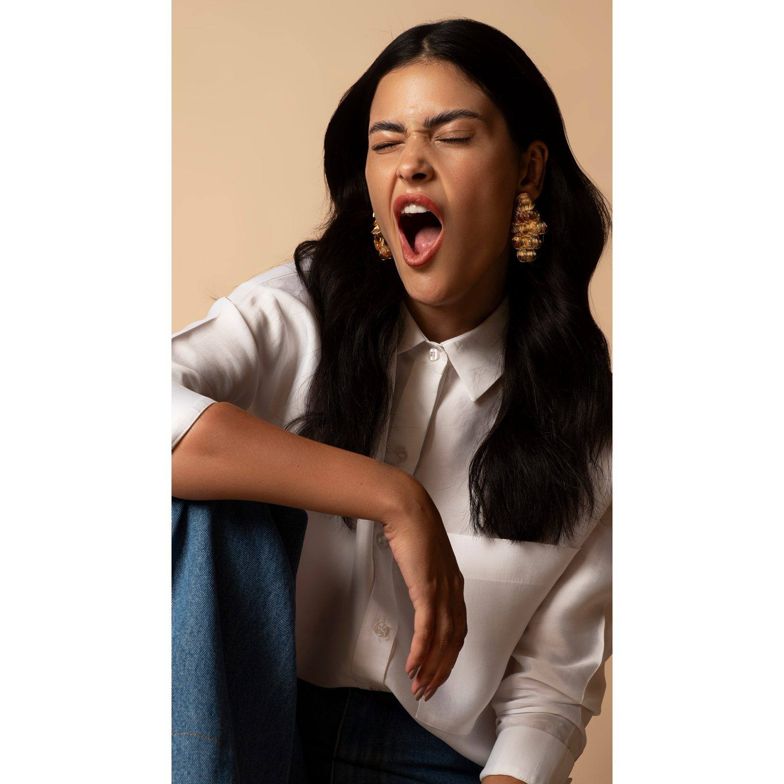 Brinco semijoia banho ouro 18k. 9 folhas em trabalho de foto corrosão e sobrepostas e maleáveis. Niquel free