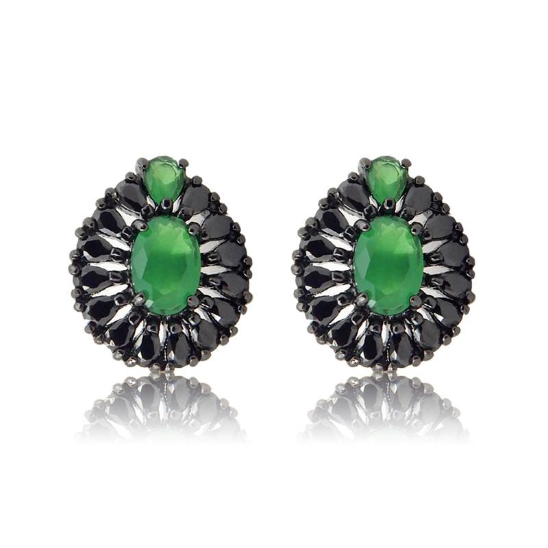 Brinco semi joia. Formato gota. Zircônia oval facetada, contorno mini gotinhas em cores.