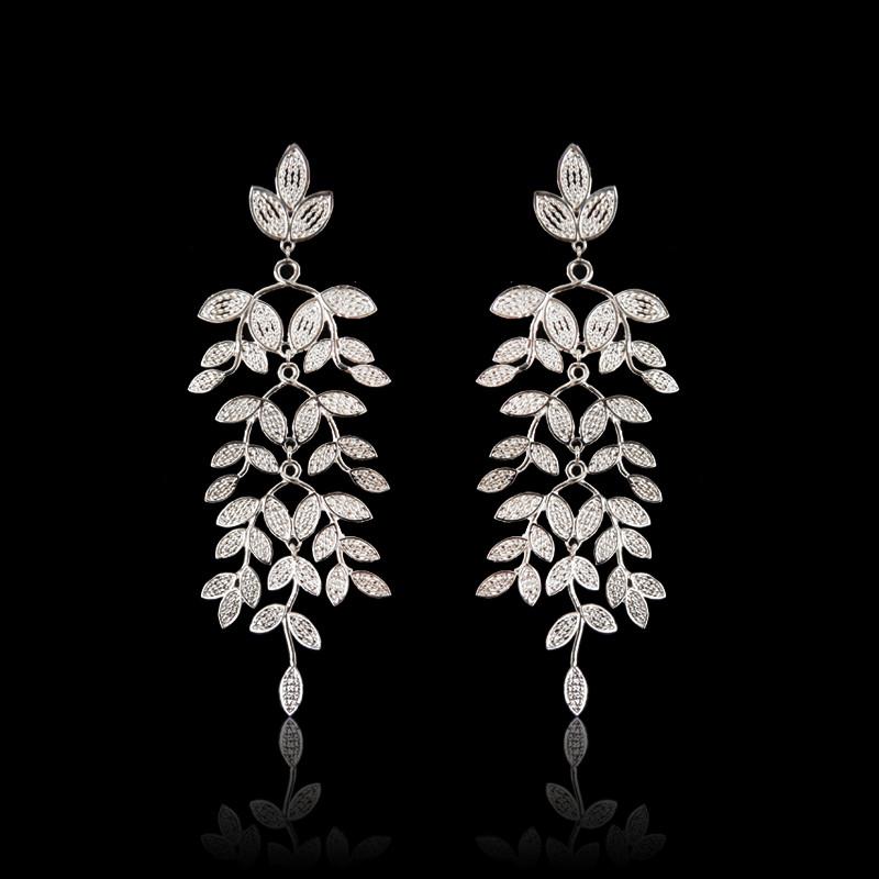 Brinco semi joia. Todo folhas em filigrana e galhos articulados.
