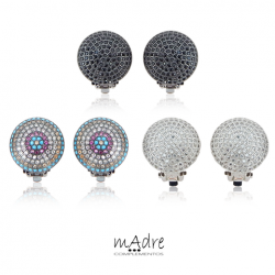 Brinco semi joia. Pavê de micro zircônias, redondo. FECHO PRESSÃO.