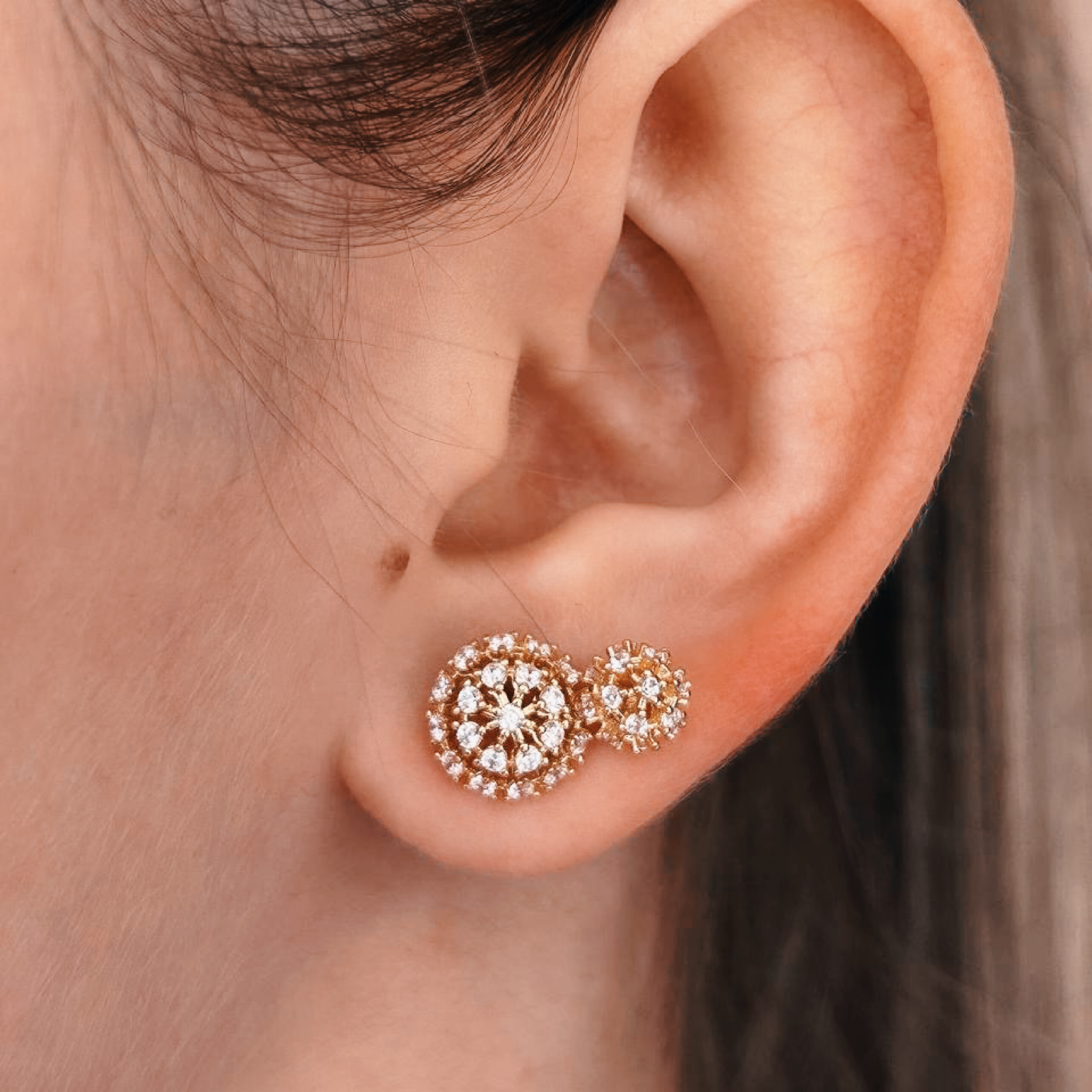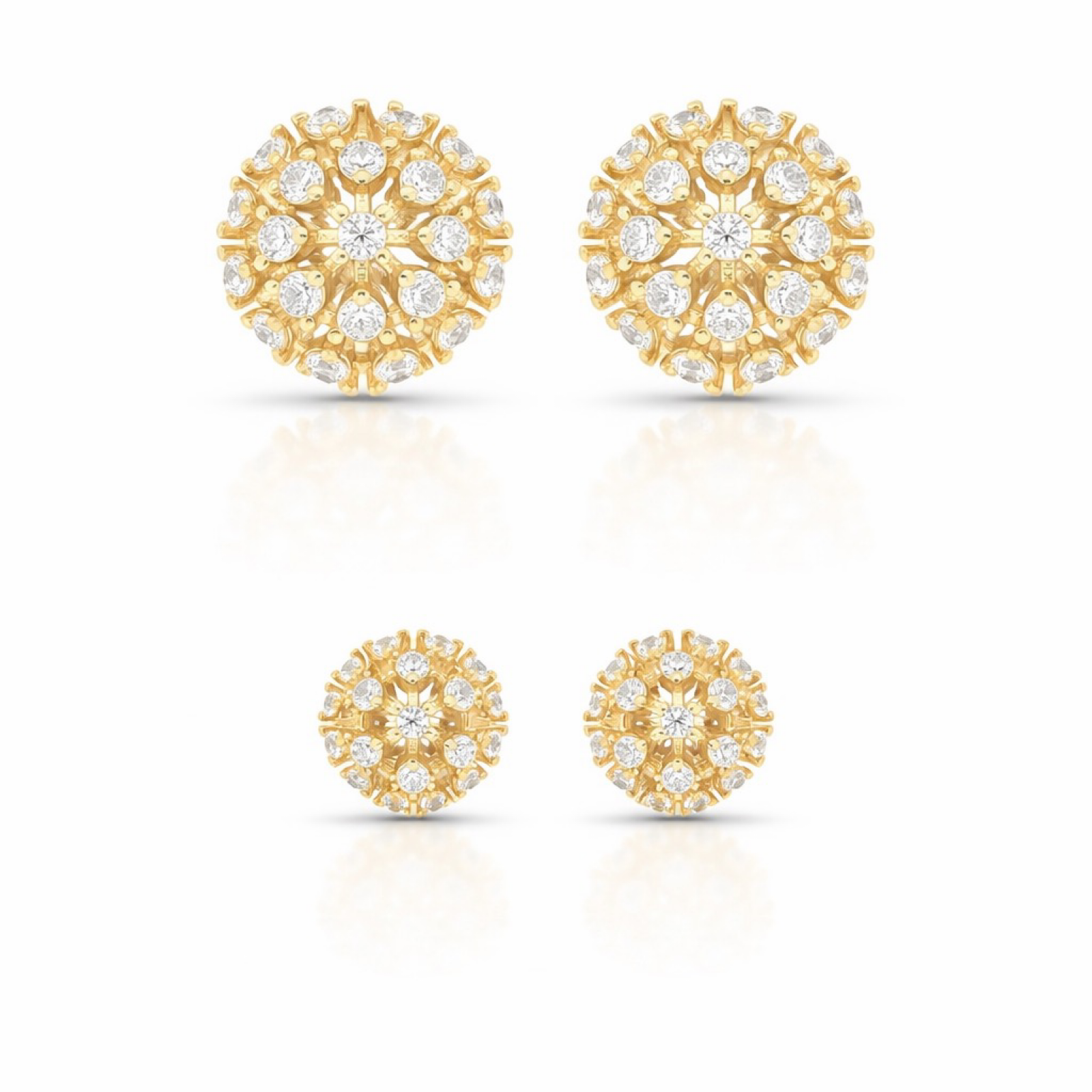 Kit brincos semijoia banho ouro 18k. Par. Meia esfera. Pequeno e mini, todos cravejados com zircônias. Niquel free