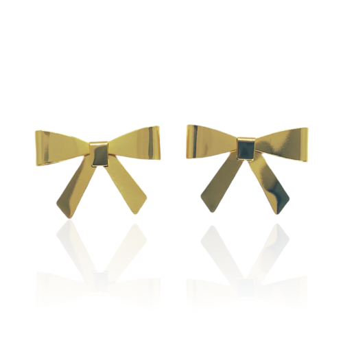 Brinco semijoia banho ouro 18k. Modelo laço pontas retas, liso e médio. Niquel free.