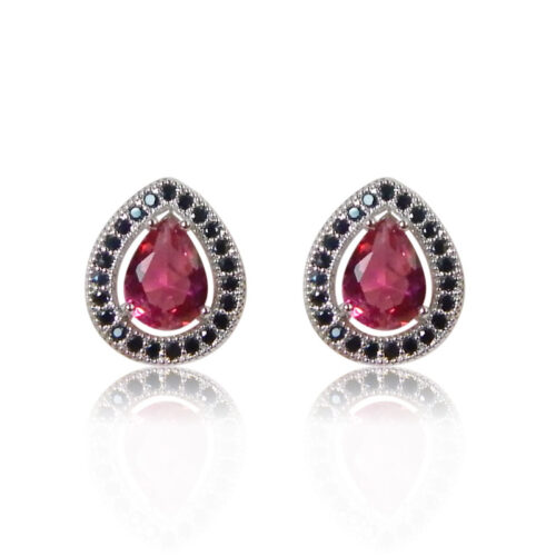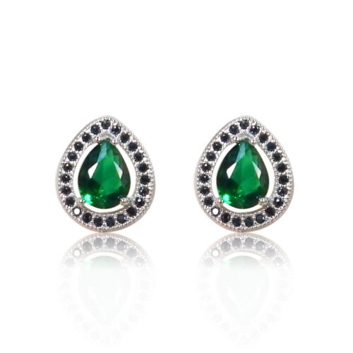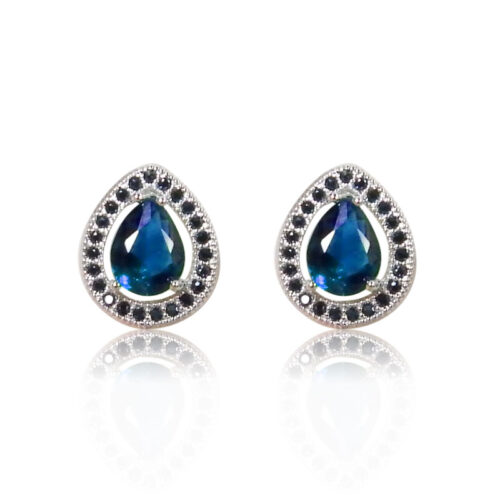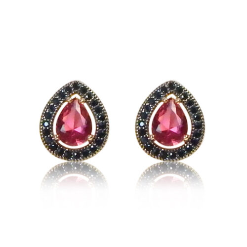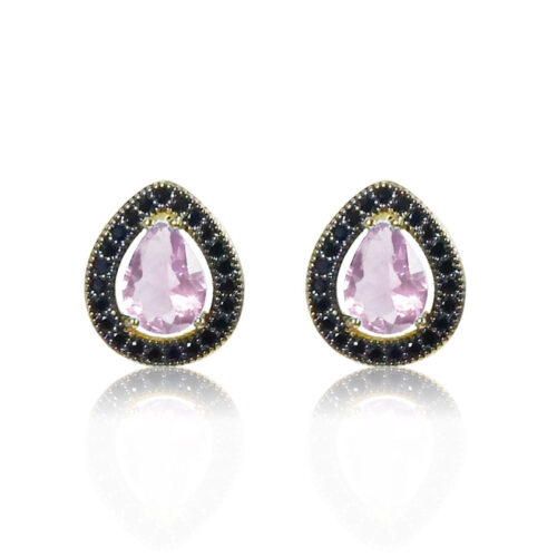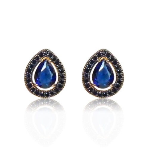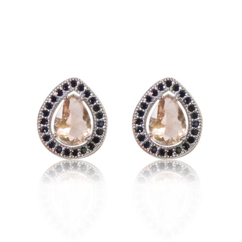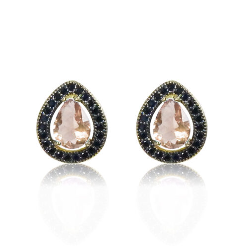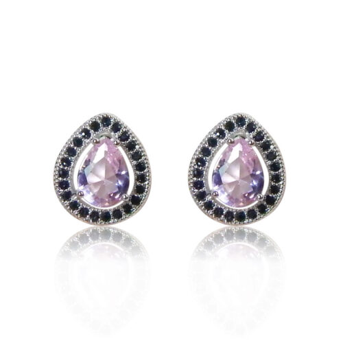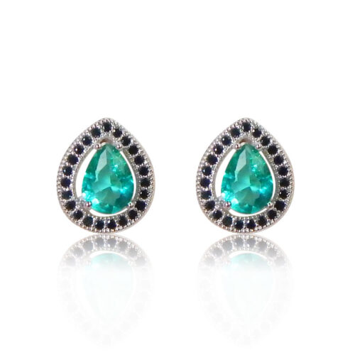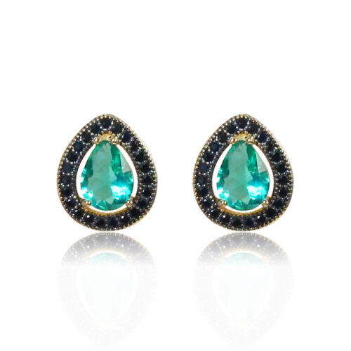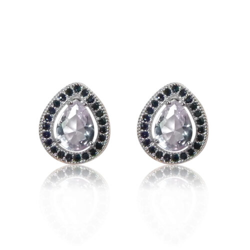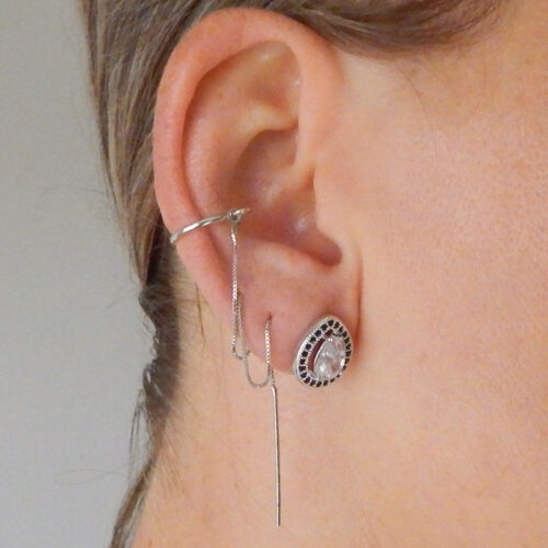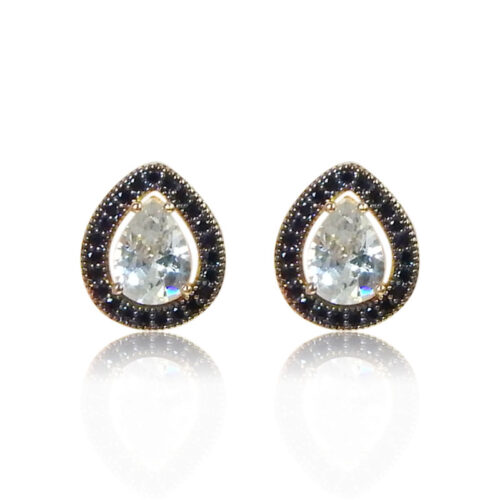 Brinco semi joia. Gota solitária em zircônia facetada e contorno em micro cravação negra.