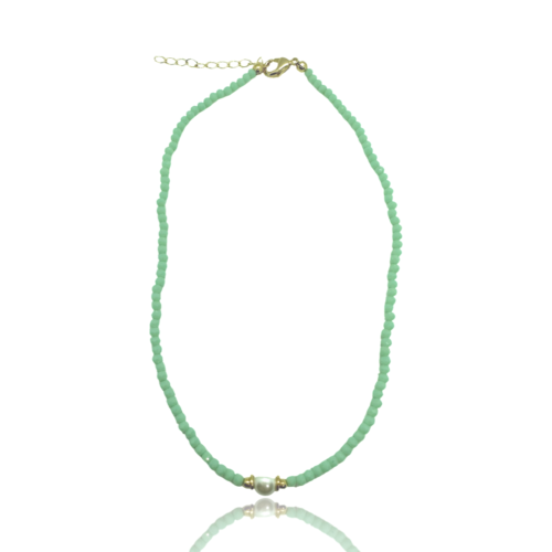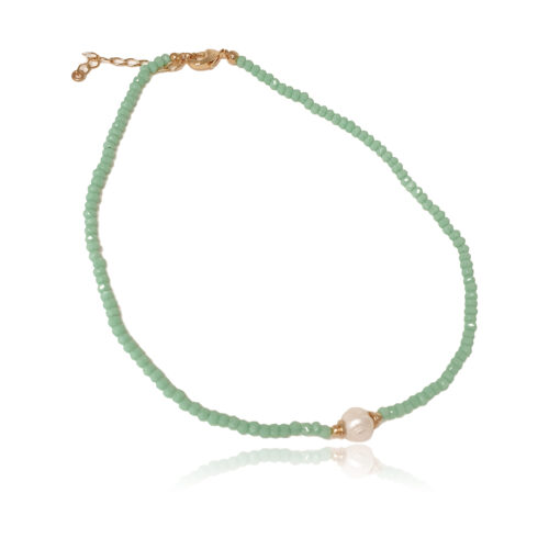 Colar semi joia banho ouro 18k. Infantil. Modelo choker, toda em mini cristais facetados, com pérola de água doce ao centro.