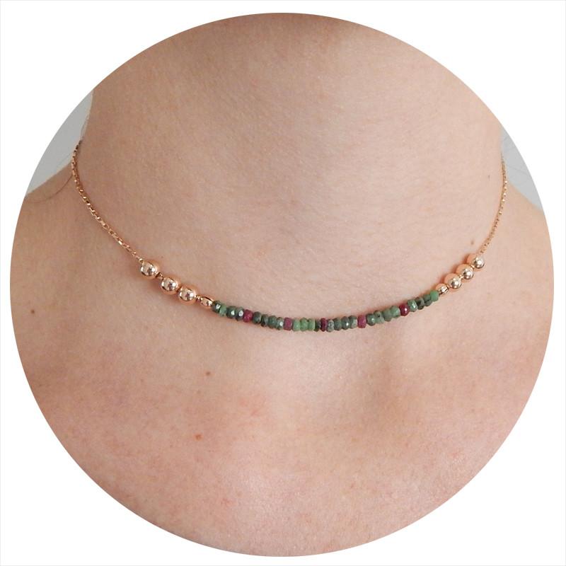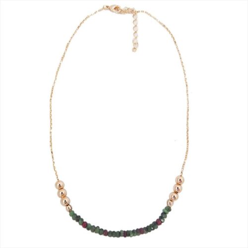 Colar semi joia banho ouro 18k. Modelo choker, corrente com bolinhas e fio em cristais facetados ou hematitas.
