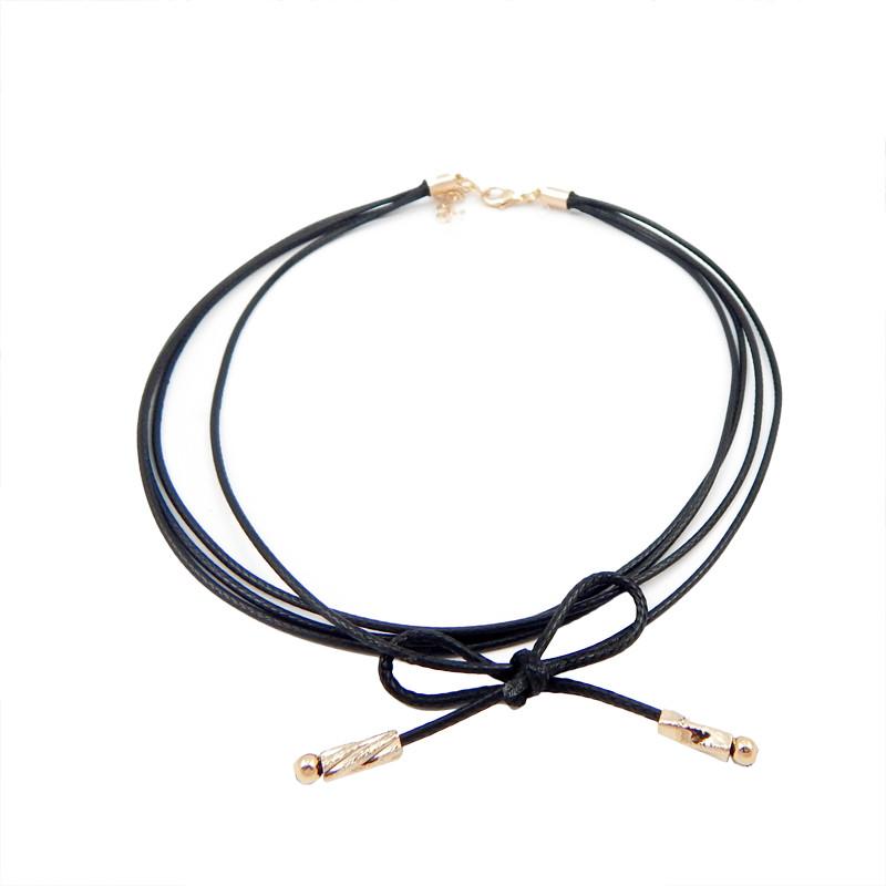 Colar semi joia banho ouro 18k. 3 fios cordão encerado, laço com ponteiras e caninho detalhe.