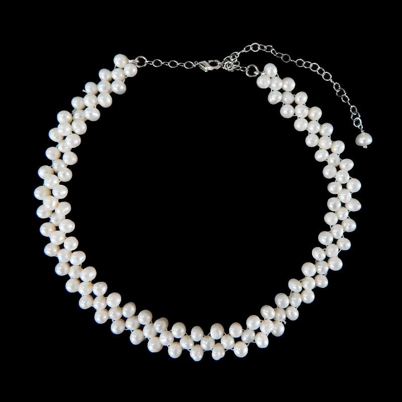 Colar semi joia. Modelo choker, toda em pérolas cultivadas, trançadas à mão em cordão de seda.