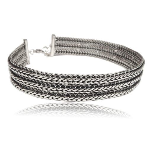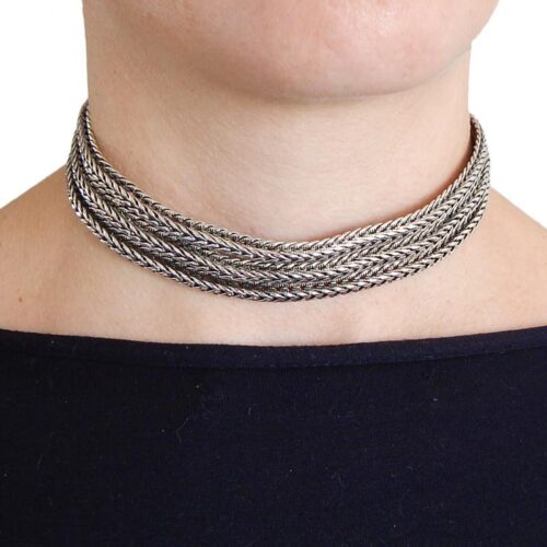 Colar bijuteria. Modelo choker em metal, trabalho trançado.