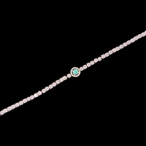 Colar semi joia banho ródio. Modelo choker tipo riviera 1/2 fio em zircônias rosa opaco, 1/2 fio corrente. Centro em zircônia acqua com contorno cravejado em micro zircônia cristal.