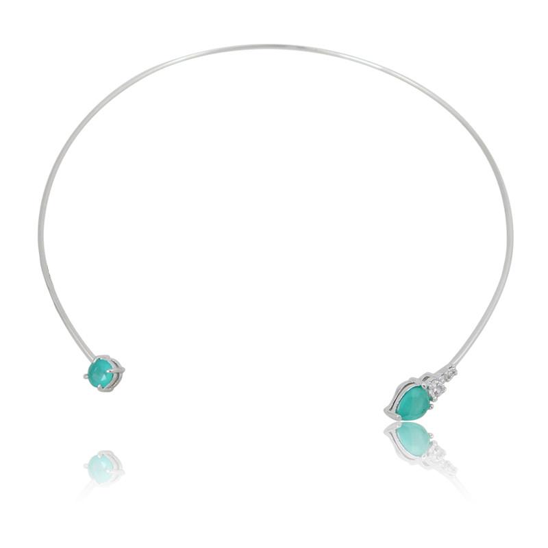 Colar semi joia. Aro fino com fenda e 2 extremidades com zircônia cor turmalina paraíba opaca.