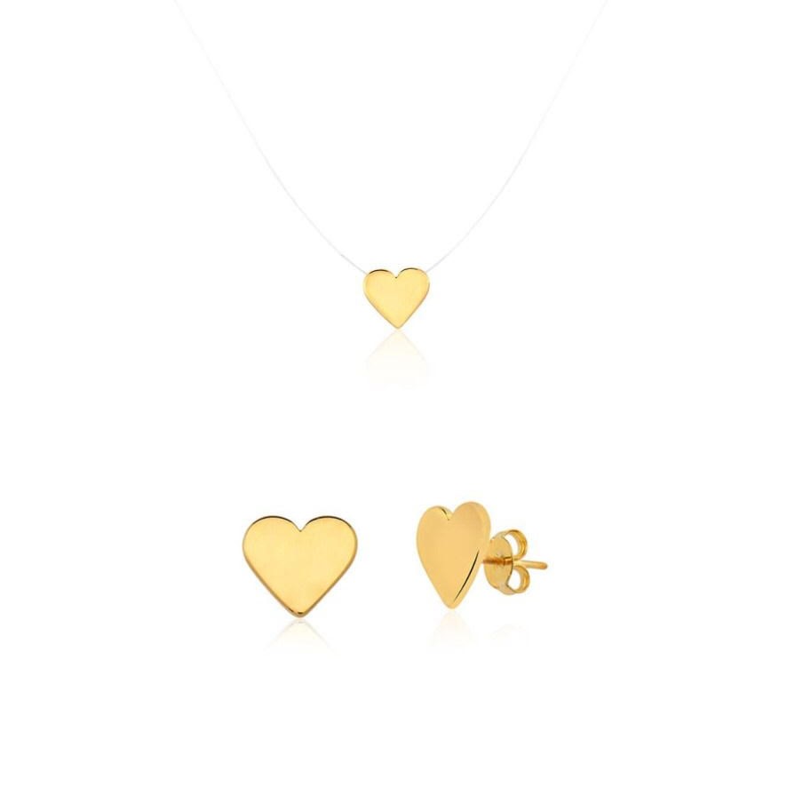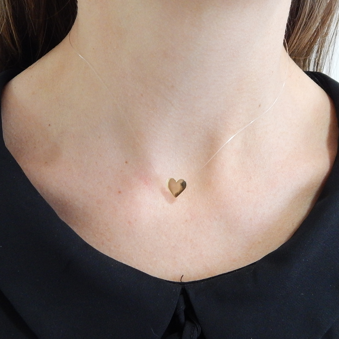 Colar semijoia banho ouro 18k. Fio nylon. Pingente coração chapado liso. Fecho também em semi joia. Niquel free