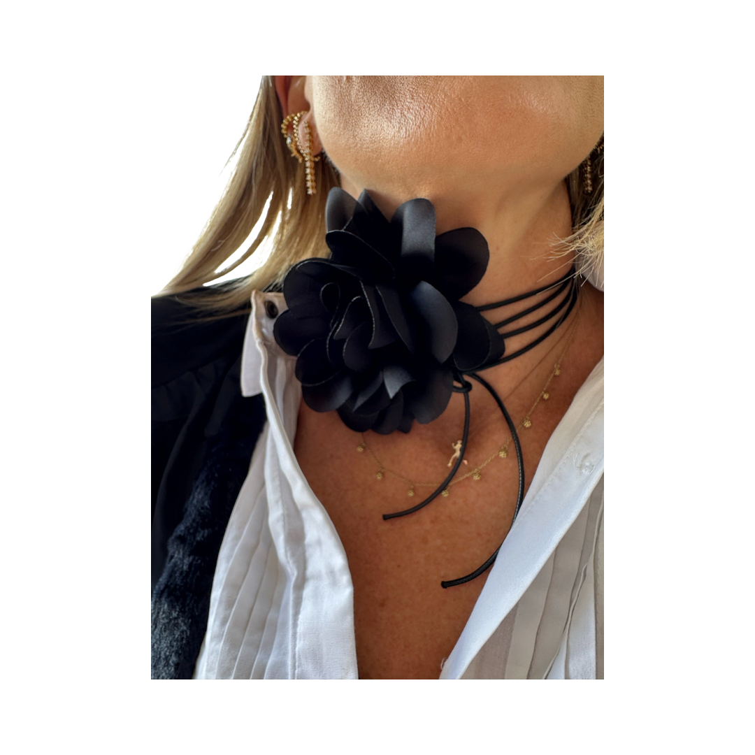 Colar/cinto flor tecido cor preta com cordão encerado. Design em 3D e cortada a laser. Versátil. para usar no pescoço como choker ou como cinto. O must have do momento. Tendência fashion nas passarelas internacionais
