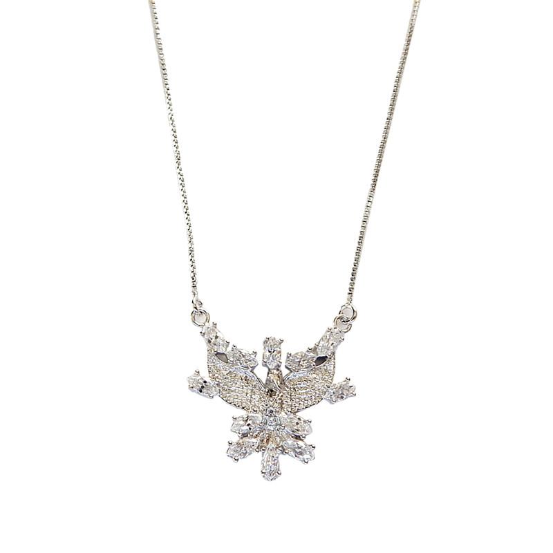 Colar semi joia banho ródio. Pingente fixo Divino Espírito Santo estilizado e 12 navetes.