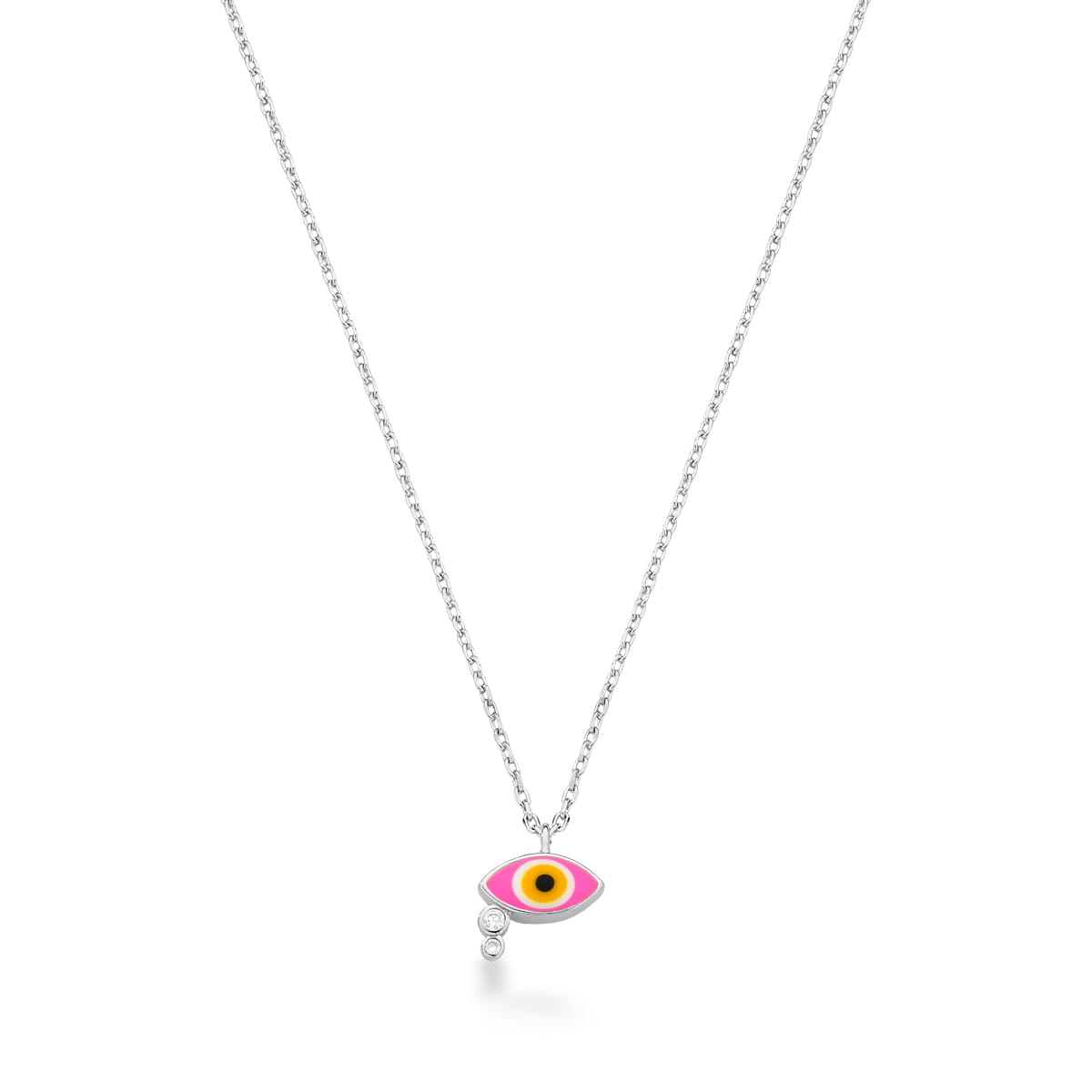 Colar semi joia banho ródio. Corrente mini elos, com pingente olho grego no formato, esmaltado e mini ponto de luz duplo na lateral. Niquel free