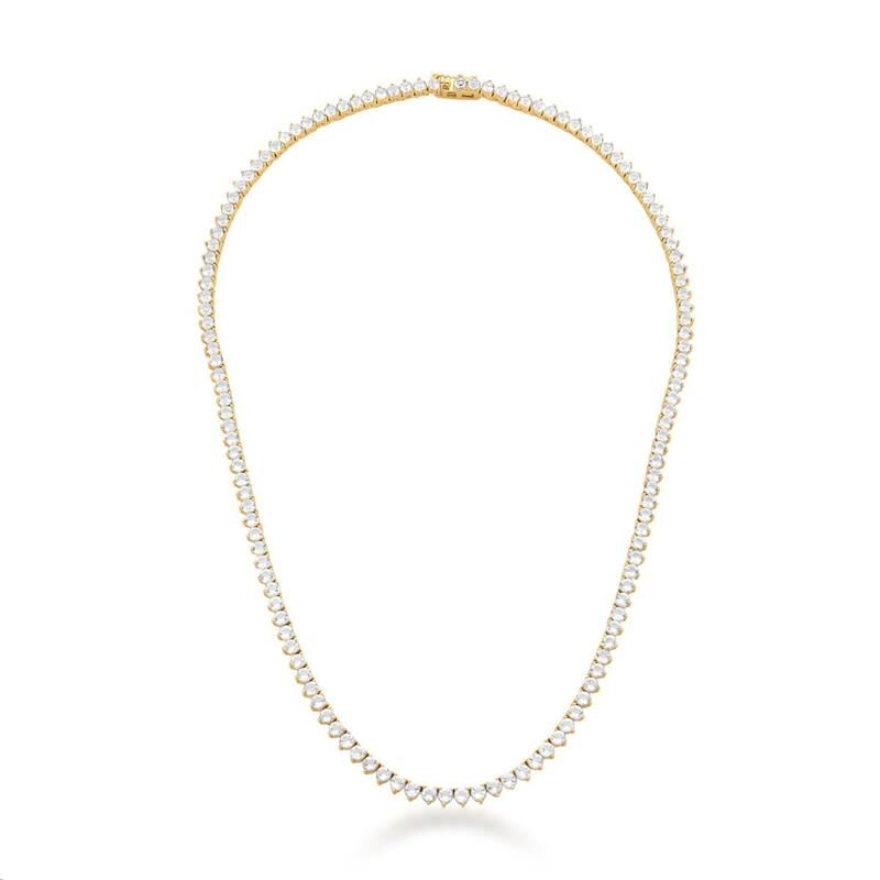 Colar semijoia banho ouro. Modelo riviera, toda em zircônias 3 garras de 3,0 mm. Fecho gaveta. Niquel free