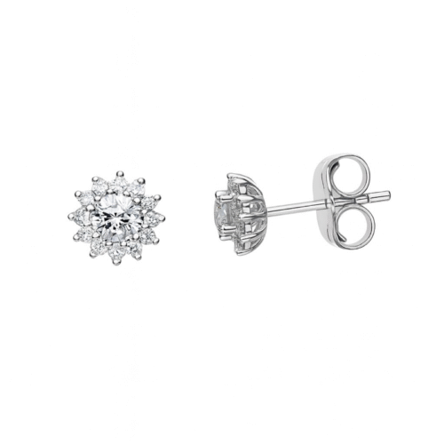 Colar joia prata 925 com banho ródio. Ponto de luz em Moissanite, contorno cravejado. Corrente mini cartier. Quilatagem: 0.3 ct. Classificação GRA: D