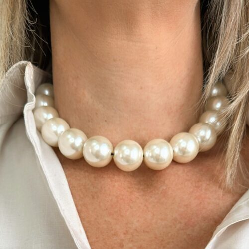 Colar bijuteria detalhes em níquel. Fita de veludo alemão longa, com fio pérolas sintéticas grandes. Várias possibilidades de amarração.