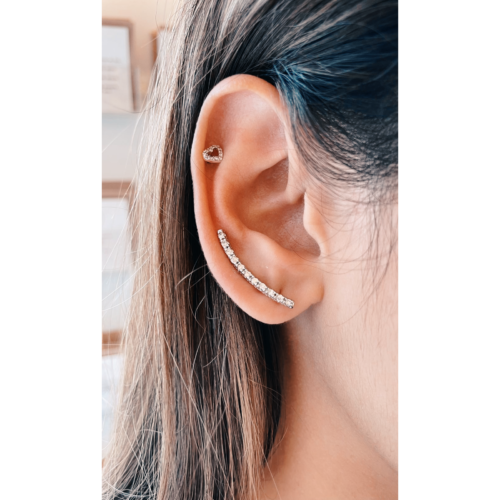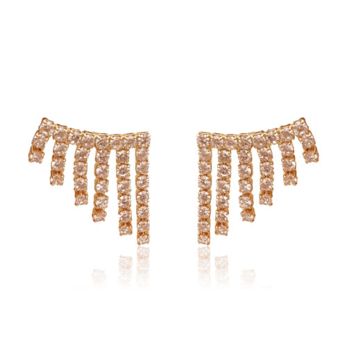 Brinco semijoia. Modelo ear cuff. 6 fios de zircônias em correntes, tamanho degradé. Níquel free.