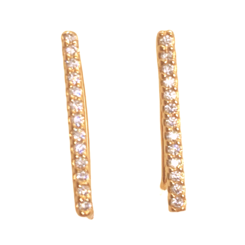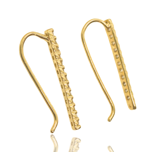 Brinco semijoia banho ouro 18k. Modelo ear cuff tipo palito, todo cravejado, médio. Gancho “anzol” – sem tarraxa. Niquel free