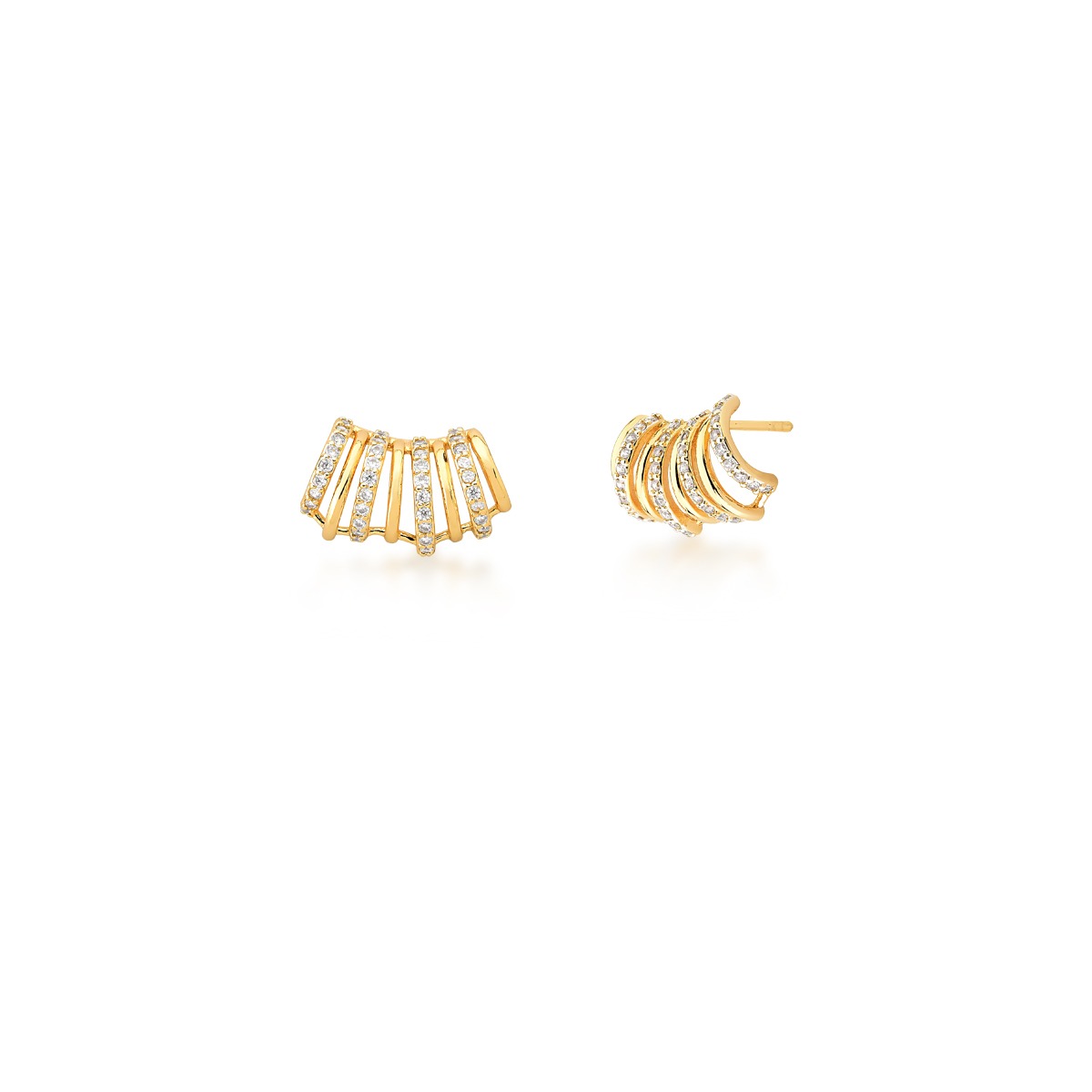 Brinco semi joia banho ouro 18k. Tipo ear cuff médio, 4 fios micro cravejados e 4 fios lisos. Niquel free