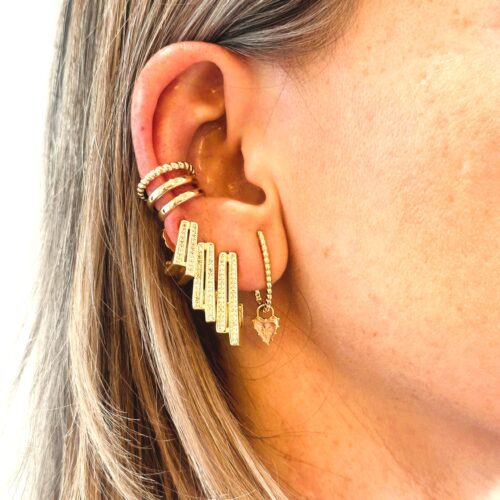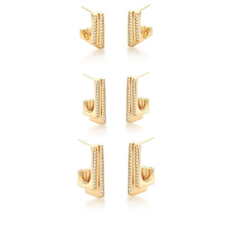 Kit argolas semi joia banho ouro 18k. Trio 1/2 argolas fio duplo, sobreposto e cravejado. Sugestão para primeiro, segundo e terceiro furos. Niquel free