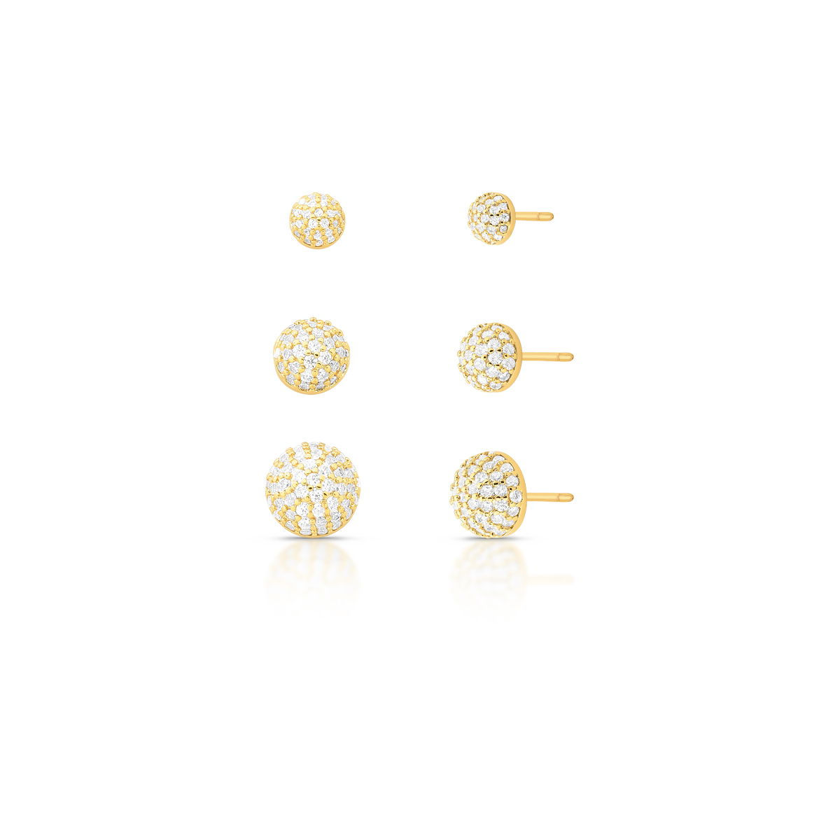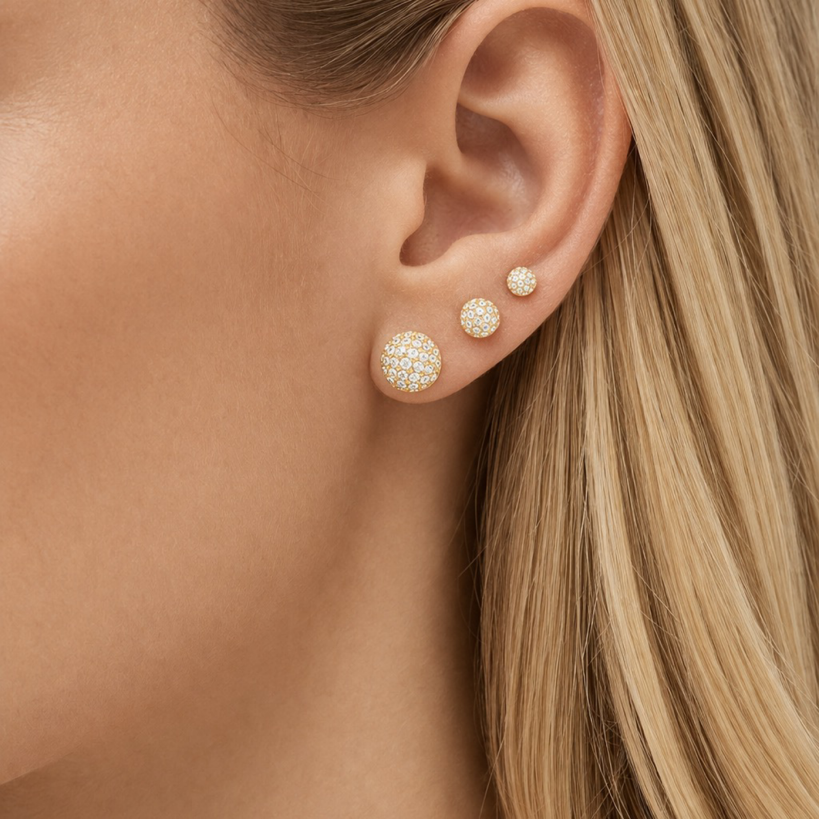 Kit brincos semijoia banho ouro 18k. Trio de pavês em tamanhos decrescentes. Sugestão para primeiro, segundo e terceiro furos. Niquel free