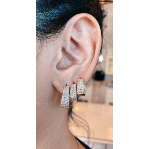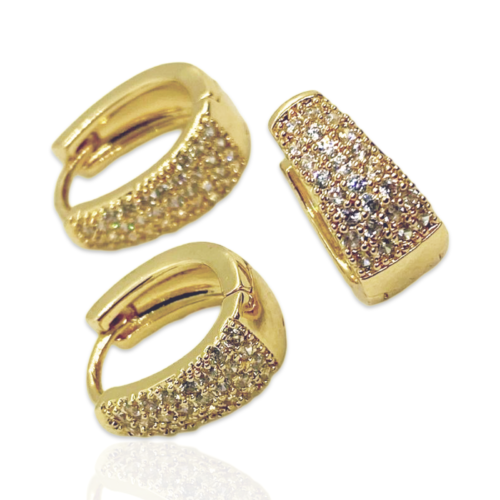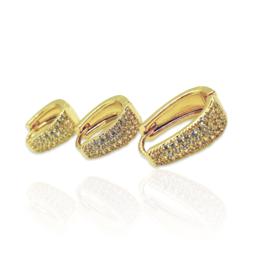 Kit semijoia banho ouro 18k. Trio de argolas ovais, afuniladas, inteiras e fecho clique. Todas em micro cravação. Niquel free