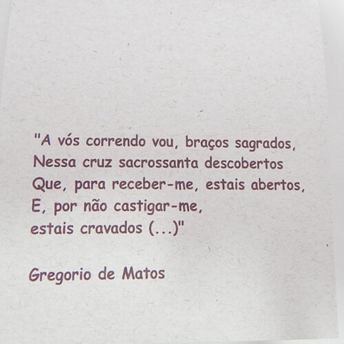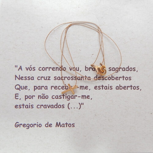 Peça da Coleção Le Poème: montado no fio de seda tamanho 40cm – tamanho adulto – ajustável manualmente e cuidadosamente embalado com poema anexo em papel reciclável e envelope pardo. Crucifixo liso.