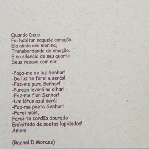 Peça da Coleção Le Poème: montado no fio de seda tamanho 40cm – tamanho adulto -, ajustável manualmente e cuidadosamente embalado com poema anexo em papel reciclável e envelope pardo.