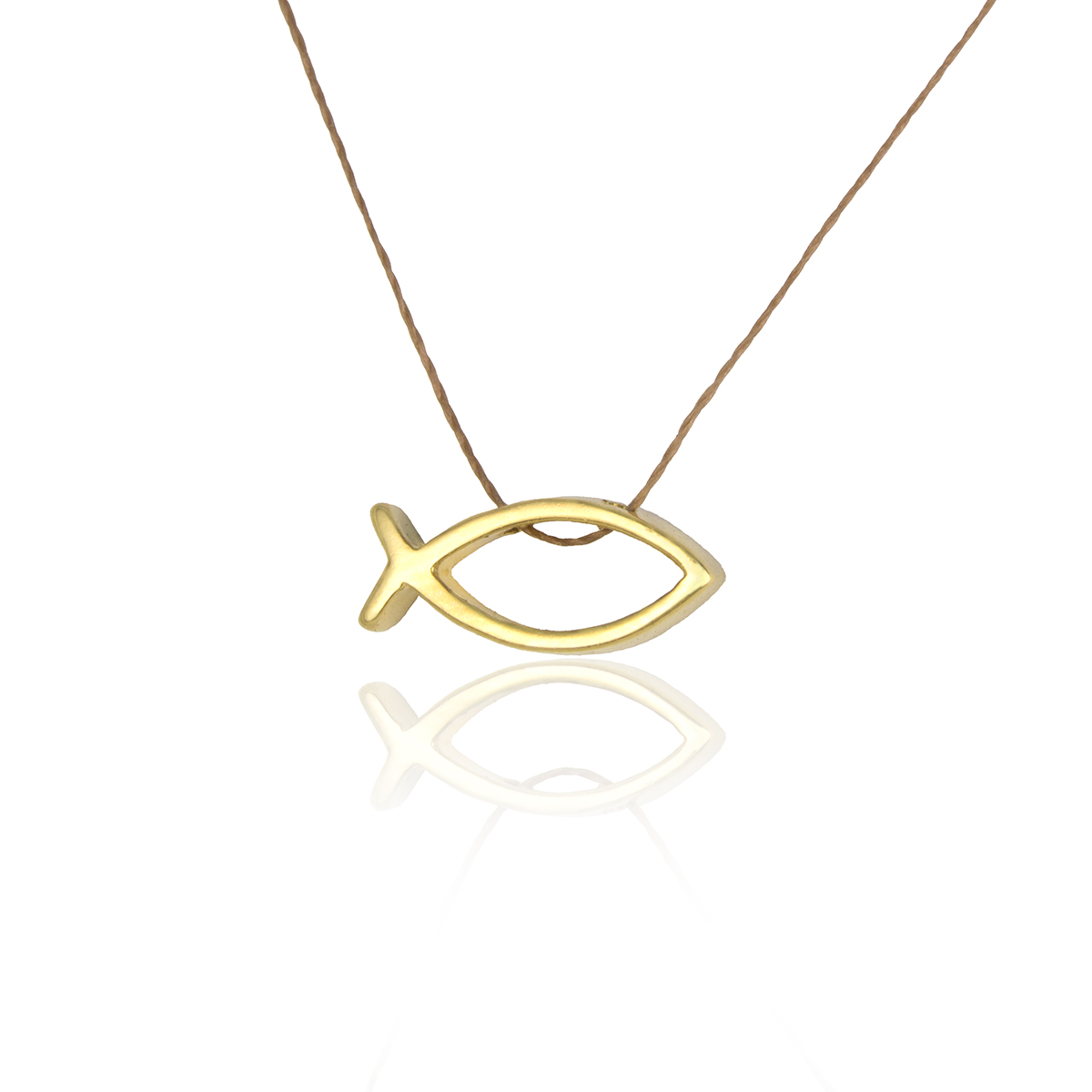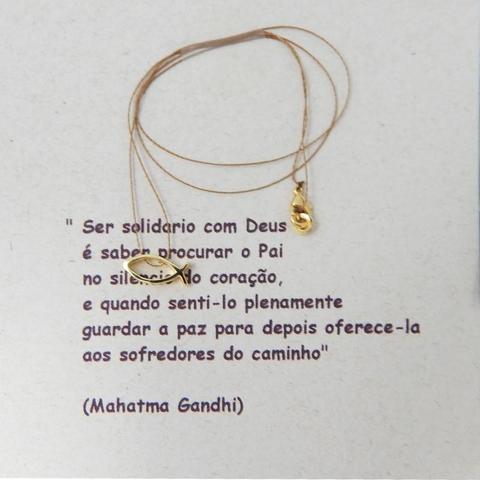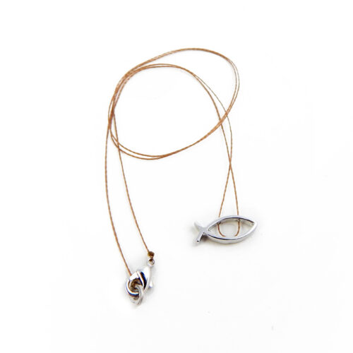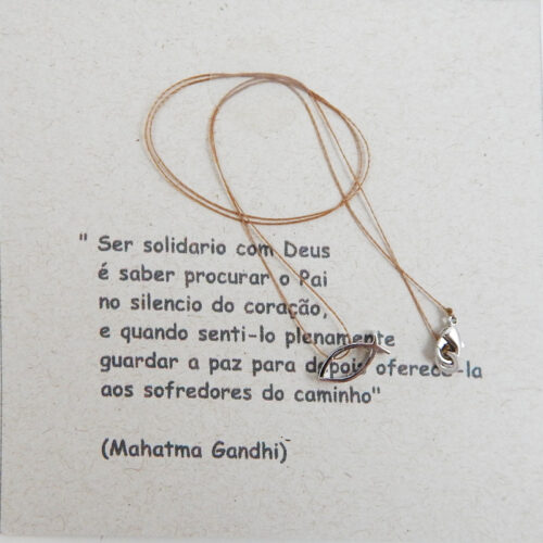 Peça da Coleção Le Poème: montado no fio de seda tamanho 40cm – tamanho adulto – ajustável manualmente e cuidadosamente embalado com poema anexo em papel reciclável e envelope pardo. Pingente peixe – símbolo cristão- vazado.